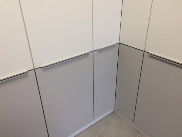 Még egy változás történt a konyhában, a fogantyút csak szálban lehetett kapni, és a felső sarokszekrényre a költözéskor pont nem jutott. Így Férj végre elment az ER-FA-ba, és hazahozott még 3 métert belőle. Azért van egy-két ötletem a megmaradt rész felhasználására 🙂 Mindenesetre fura úgy kinyitni a felső szekrényt, hogy az alsót nem kell többé hozzá 😀