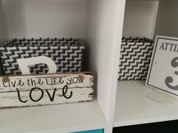 A Házban is változások zajlottak az elmúlt hetekben, az ideiglenes állapotokat kezdtük el felszámolni. A fürdőszobából kikerült az oda nem illő szekrény, rájöttem, hogy KonMarizás után nincs is szükségem rá. A középső kis szobába viszont annál inkább 🙂 Így már mind a három elem együtt van, nekem nem tűnik túl fürdőszobainak az összkép, tárolni pedig megfelelő. A vasaló és a ruhaszárító nem panaszkodott még.