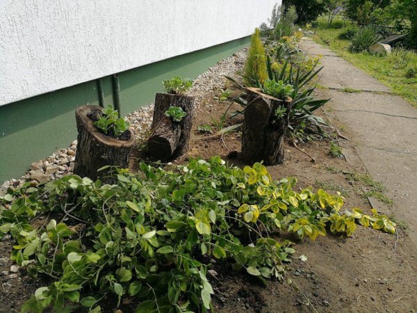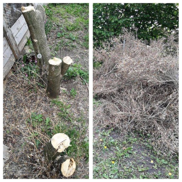 A kapun túl megmetszettük a fákat és bokrokat, a feleslegeseket el is távolítottuk, így kicsit rendezettebb lett az összkép itt is. Anyóséktól kapott ecetfáink megeredtek, Mamától pedig kaptunk pár örökzöld bokrot, amiket gyorsan az új helyükre telepítettünk.