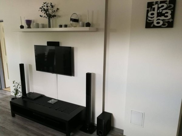 Az új tv szekrény is jól mutat, egy fekete futóval eltakarva a karcokat, mintha oda terveztük volna… Ha egyszer megalkotjuk a beton hatású falat mögé, húúú… Úgyis akartam valami feketét…
