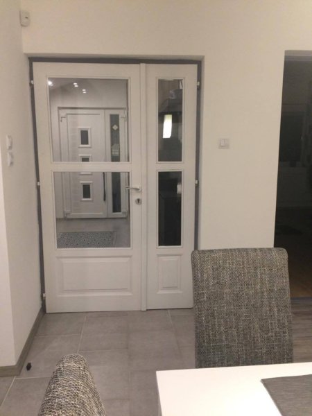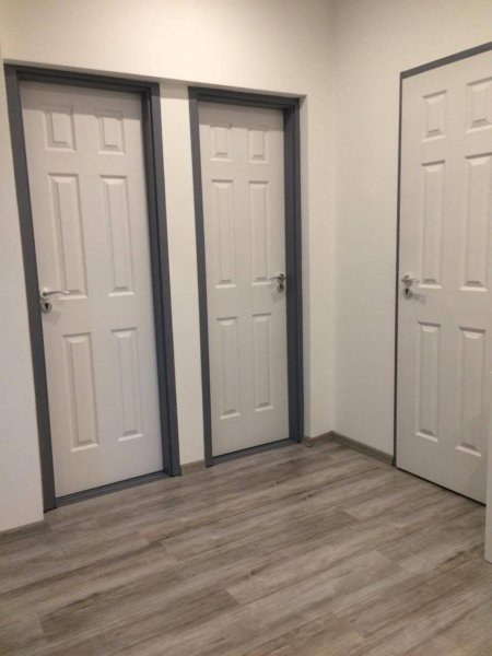 Férj ígéretéhez híven nekilátott az ajtókeretek lefestésének, hengerrel és a matt szürke Trilakk Trináttal. Az ajtókat pedig festékszóróval fújta, amit a kompresszorra kötött rá. Bevallom nem hittem benne, hogy egyenletes lesz, de a végeredmény bámulatos. Egyenletes, három vékony rétegben mind a két oldalon, ez is Trilakk matt fehér színben. Két liter volt az anyagszükséglet a 7 ajtóra.