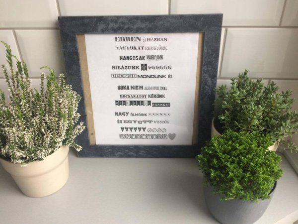 Csináltam egy általam megálmodott képet is, sok sablont vegyítettem ,majd végül a betűtípusokkal játszottam kicsit. A keretet fehéren egy ócskapiacon vettem 200 Ft-ért, egyébként véletlenül Ikeás 😀