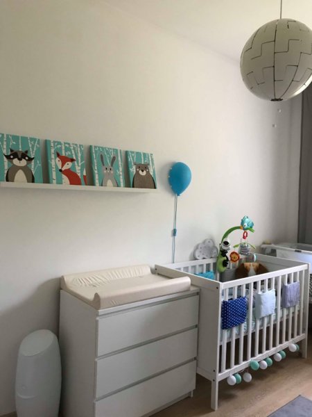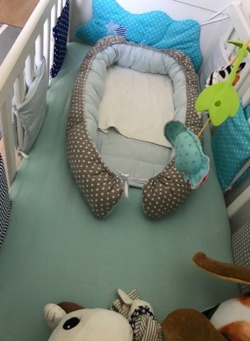 A kiságy fölé egy kék Drömminge lufi lámpa került, mint éjszakai fény, persze abból is van több fajta, ez és a mozgásérzékelős vált be eddig. Terveztünk még feliratot, vagy hegyes hátteret, de az még várat magára, vagy majd idő közben kitaláljuk. Tudom, túl optimista vagyok, lehet, hogy évekről beszélünk 😀