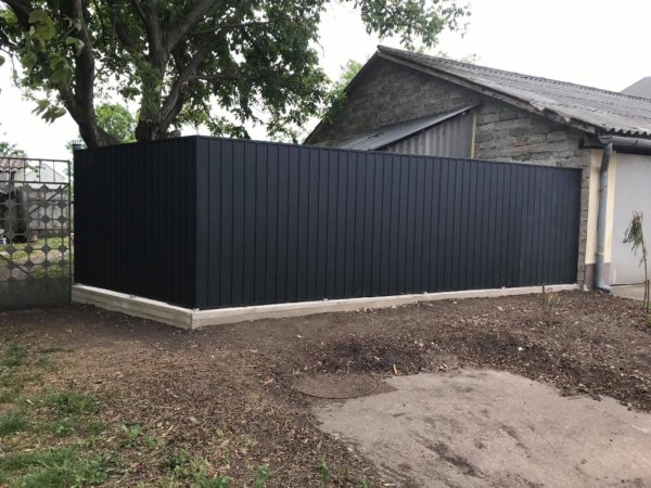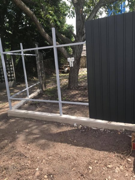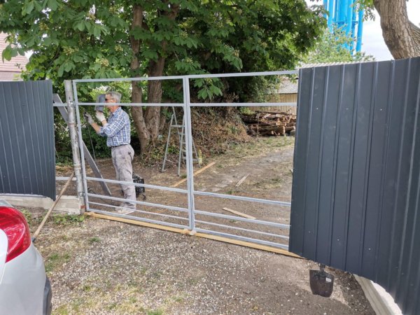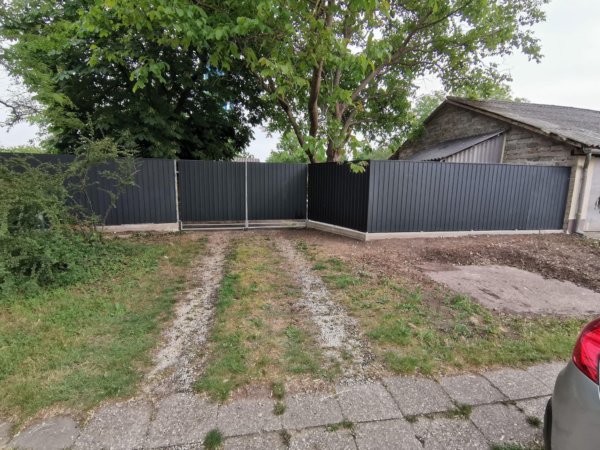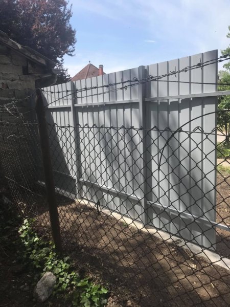A negyedik hétvégén kerülhettek fel végre a lemezek, szín azonos, önmetsző csavarokkal és felső szegélyekkel együtt. A szögesdrótos kerítést természetesen elbontottuk.