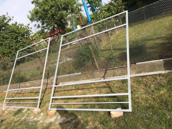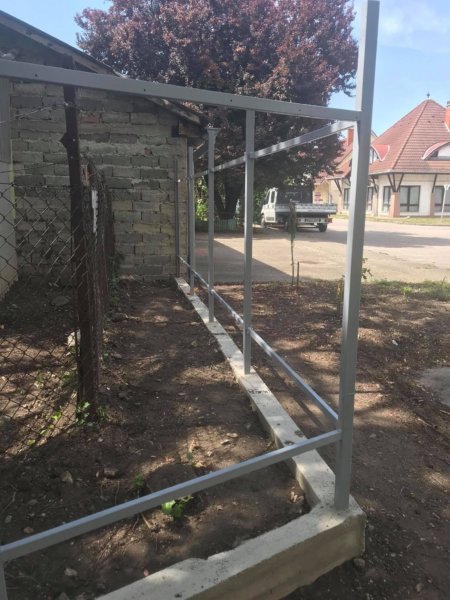 A harmadik hétvégén a tartó oszlopok és keresztvasak összehegesztését csinálta Férj, aki életében először hegesztett, teszem hozzá egész ügyesen, még Após is megdicsérte! 😀 Enyém volt a festés, szép világos szürkével. (Gondoltátok volna? :D)